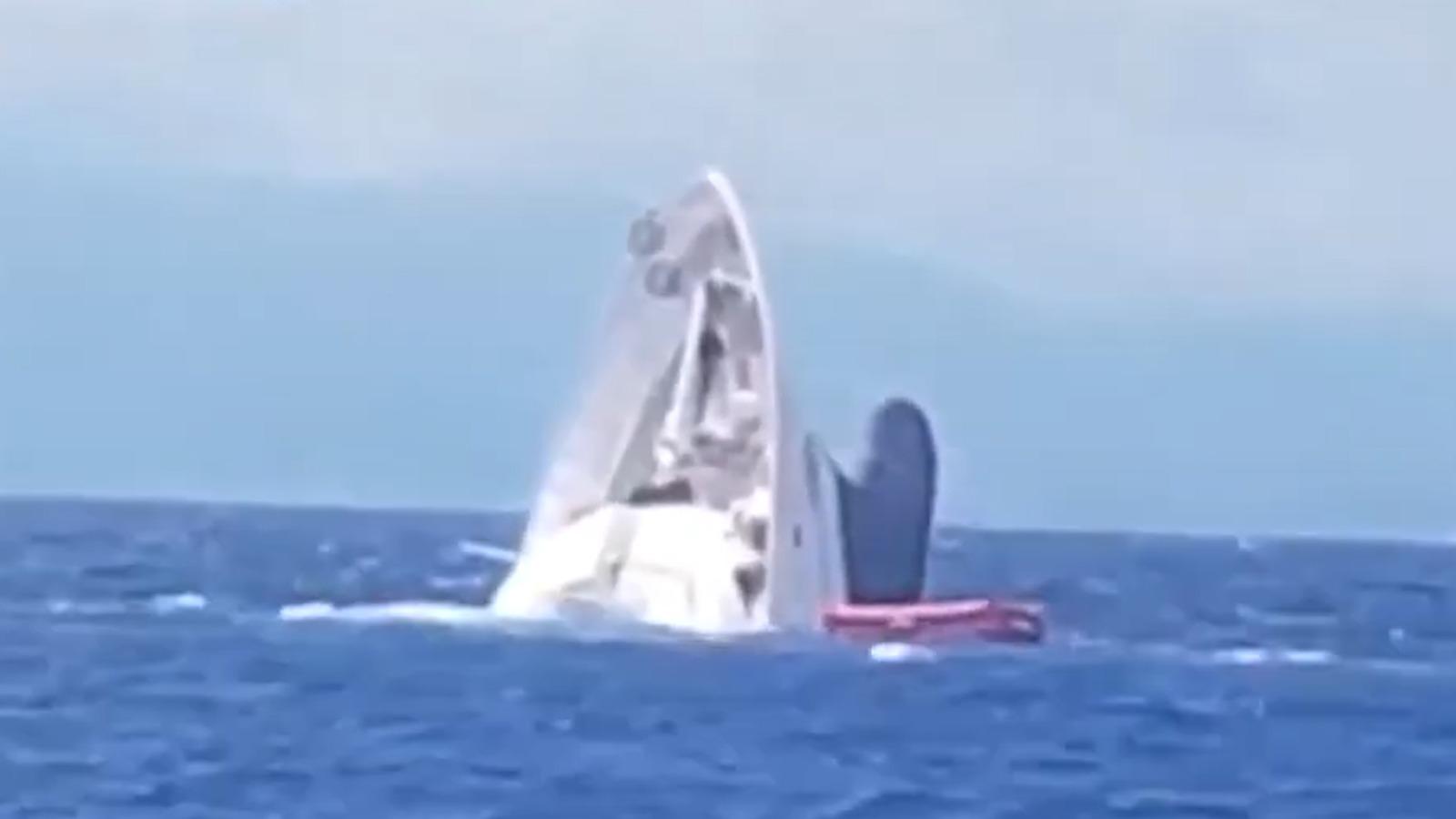 Momentul dramatic când superiahtul „Saga” se scufundă în apropiere de coasta portului Catanzaro, Italia. Cinci persoane aflate la bord, salvate de un echipaj românesc