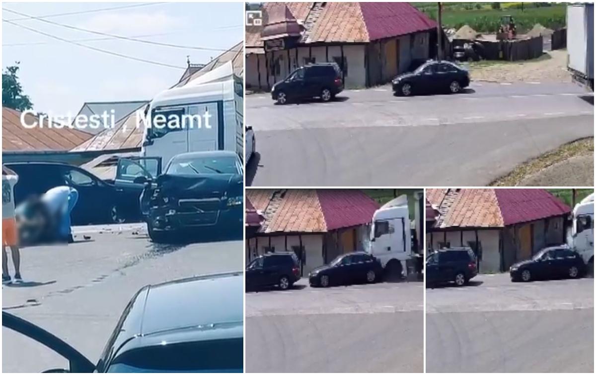 Momentul impactului când un TIR intră în plin în două autoturisme care staţionau în Iaşi. Cinci persoane, printre care doi copii, au ajuns la spital