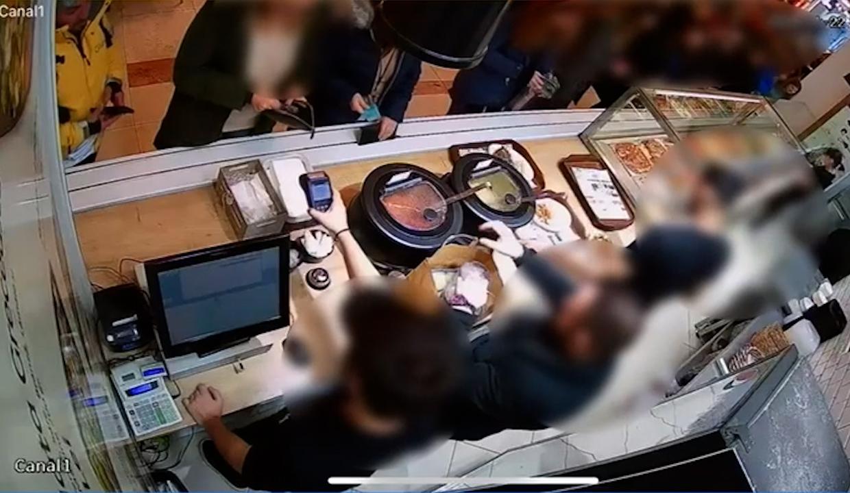 Momentul în care un curier Glovo fură telefonul din buzunarul unei femei, într-un mall din Capitală. Jaful a durat câteva secunde
