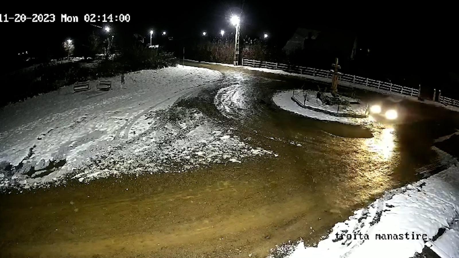 Momentul în care un minor se izbeşte de o troiţă cu maşina furată, în Suceava. Îşi pune apoi mâinile în cap, iar tovarăşul lui fuge cu plăcuţele