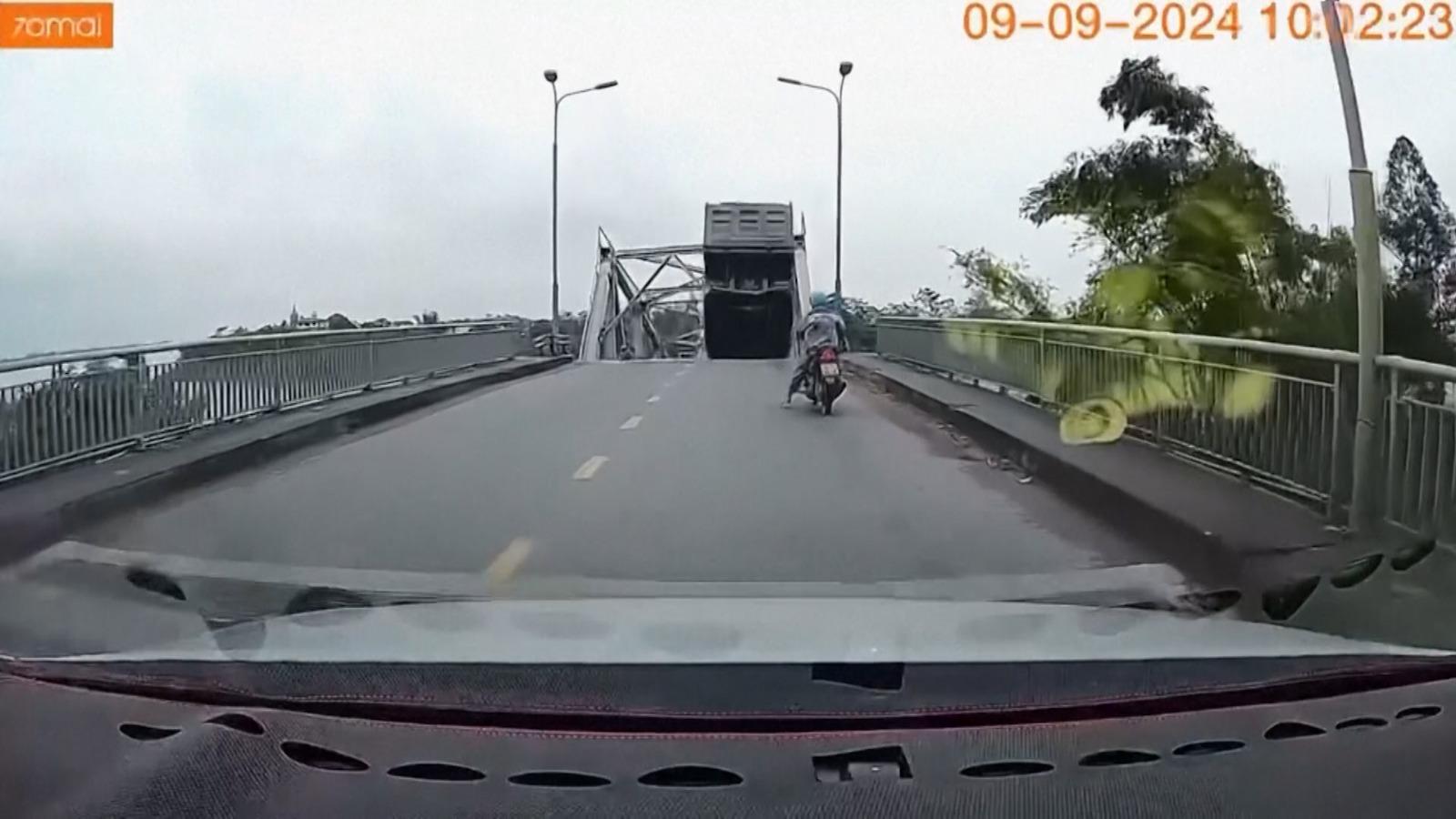 Momentul în care un pod lung de peste 370 de metri s-a prăbuşit în Vietnam, din cauza supertaifunului Yagi