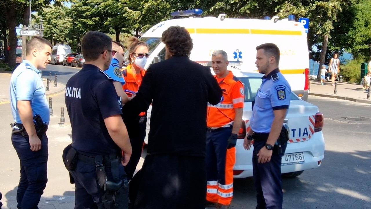 "N-am făcut nimic!" Călugăr pus la pământ și încătușat de polițiștii din Constanța, chiar în fața Arhiepiscopiei Tomisului