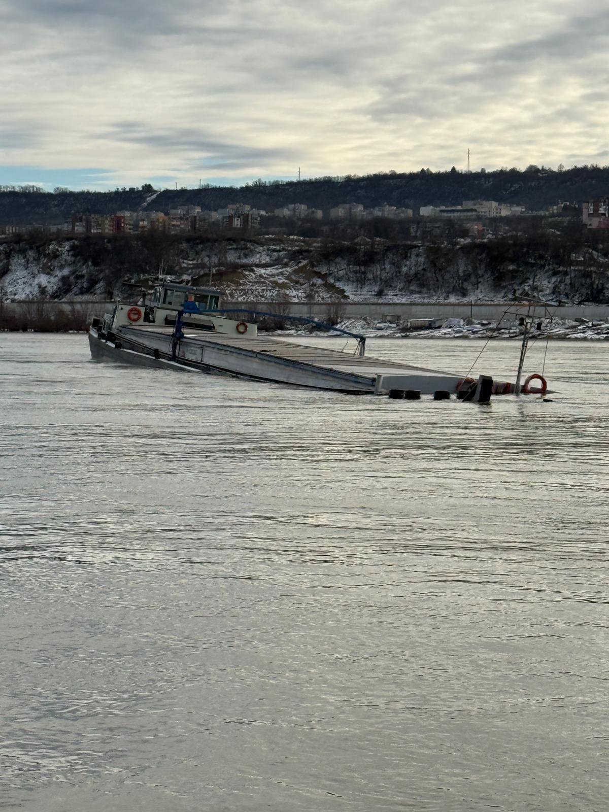 Navă cu peste 1.100 tone de îngrășământ, scufundată parțial în Dunăre. Depășiri la indicatorul amoniu
