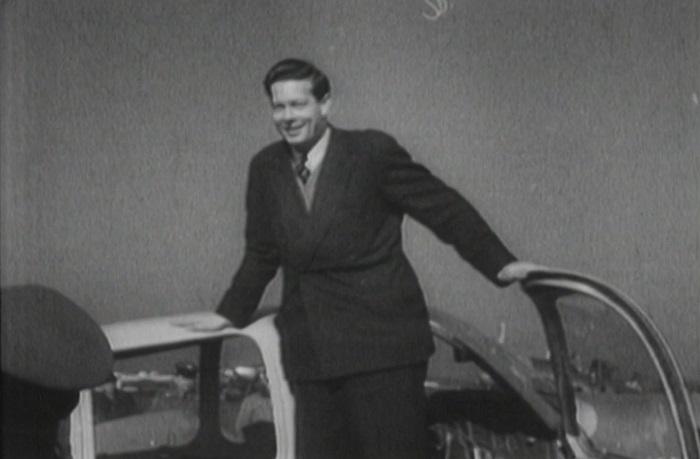 Regele Mihai pozează pe scara avionului pe care l-a pilotat