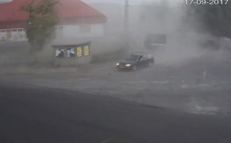 Noi imagini cu TORNADA care a lovit vestul ţării în 17 septembrie! URGIA a fost filmată în Cluj, de camerele de supraveghere (VIDEO DRAMATIC)
