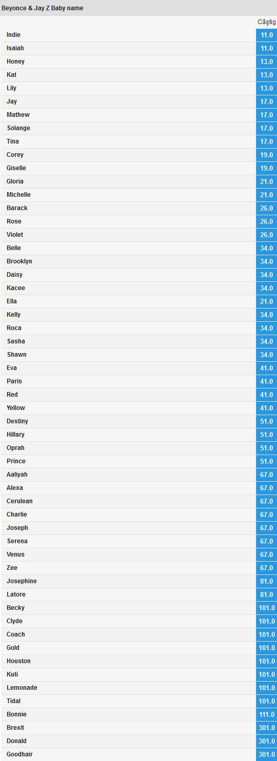 Nu ştiai că poţi paria pe asta! Ghiceşte cum se vor numi gemenii lui Beyonce şi vezi care sunt cotele