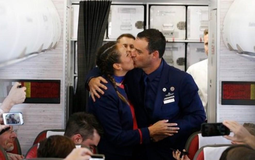 Nuntă în avion, oficiată chiar de Papa Francisc! Un cuplu de însoţitori de zbor s-a căsătorit