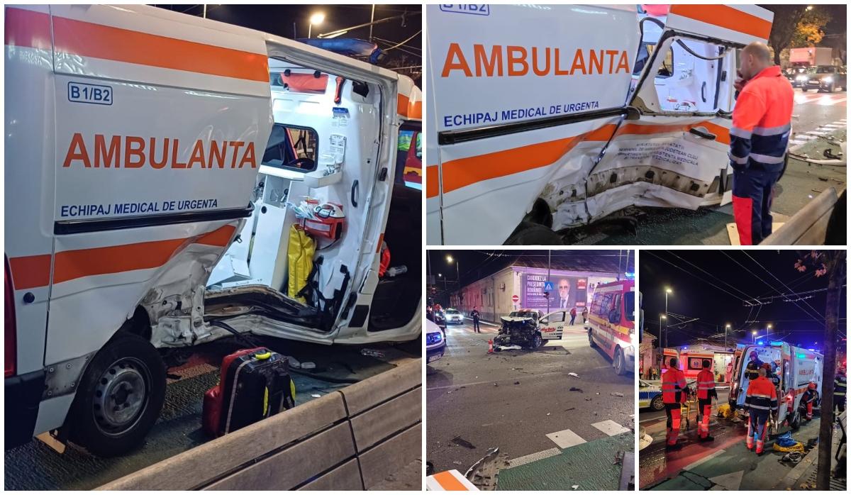 O ambulanţă implicată într-un accident în centrul orașului Cluj-Napoca. Pacienta a rămas încarcerată
