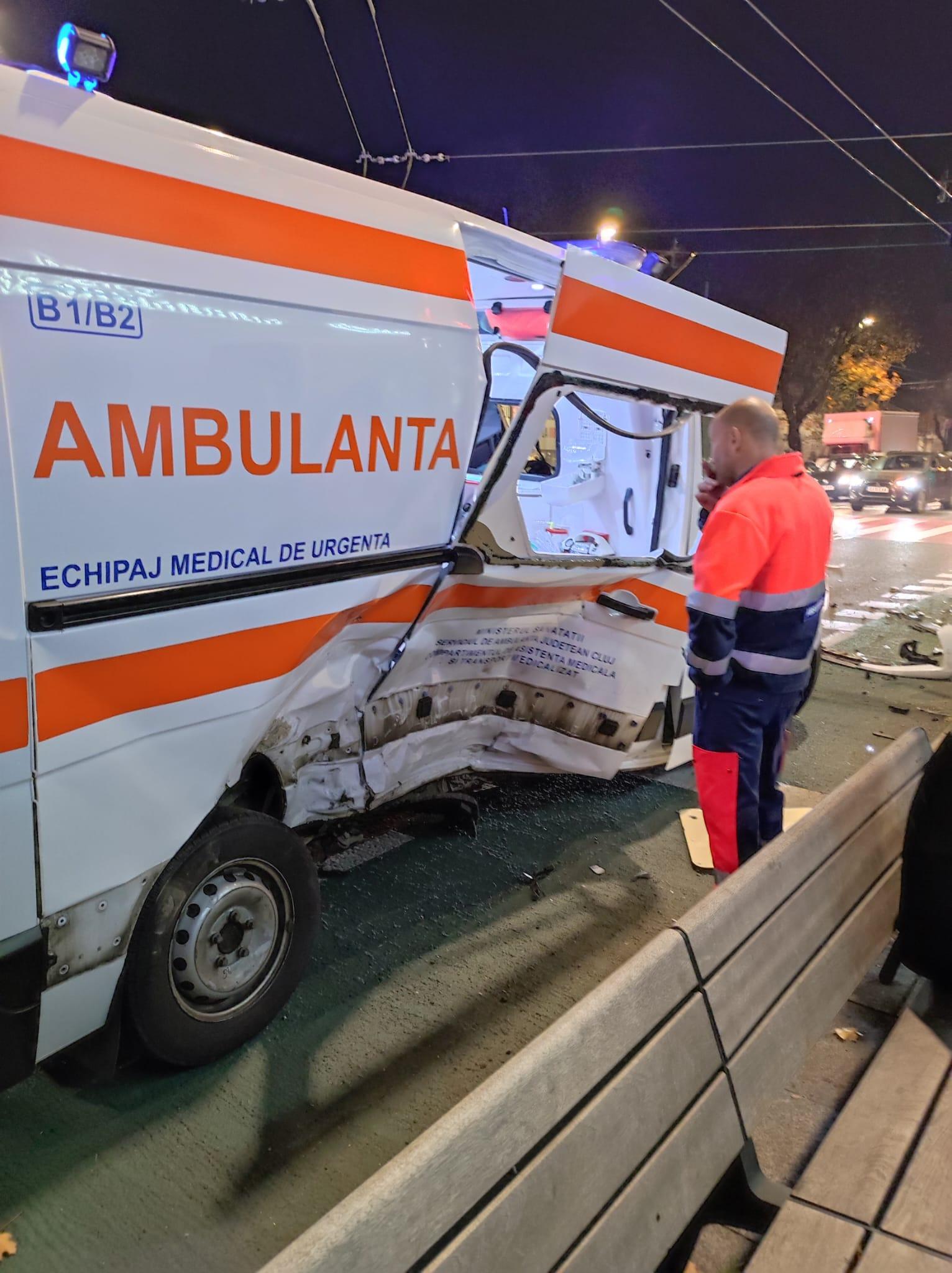 O ambulanţă implicată într-un accident în centrul orașului Cluj-Napoca. Pacienta a rămas încarcerată