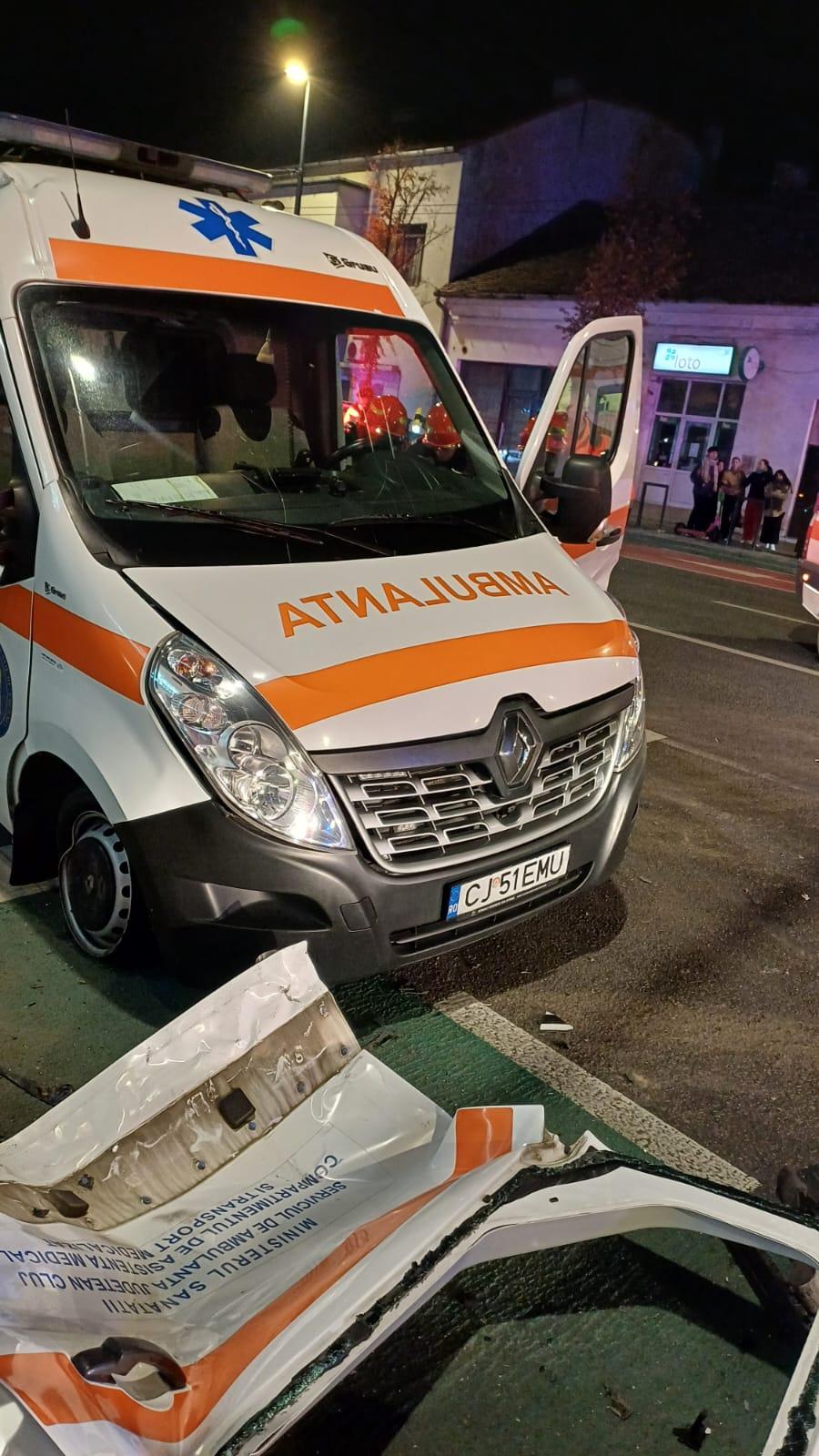 O ambulanţă implicată într-un accident în centrul orașului Cluj-Napoca. Pacienta a rămas încarcerată