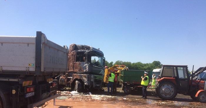 O cisternă plină cu 32 de tone de ciocolată s-a răsturnat pe o autostradă din Polonia şi a blocat complet traficul (video)