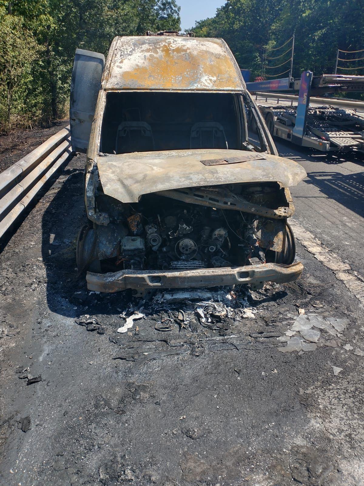O dubă a luat foc în mers, pe autostrada A1. Șoferul a văzut fum ieșind de la motor și a oprit pe banda de urgență