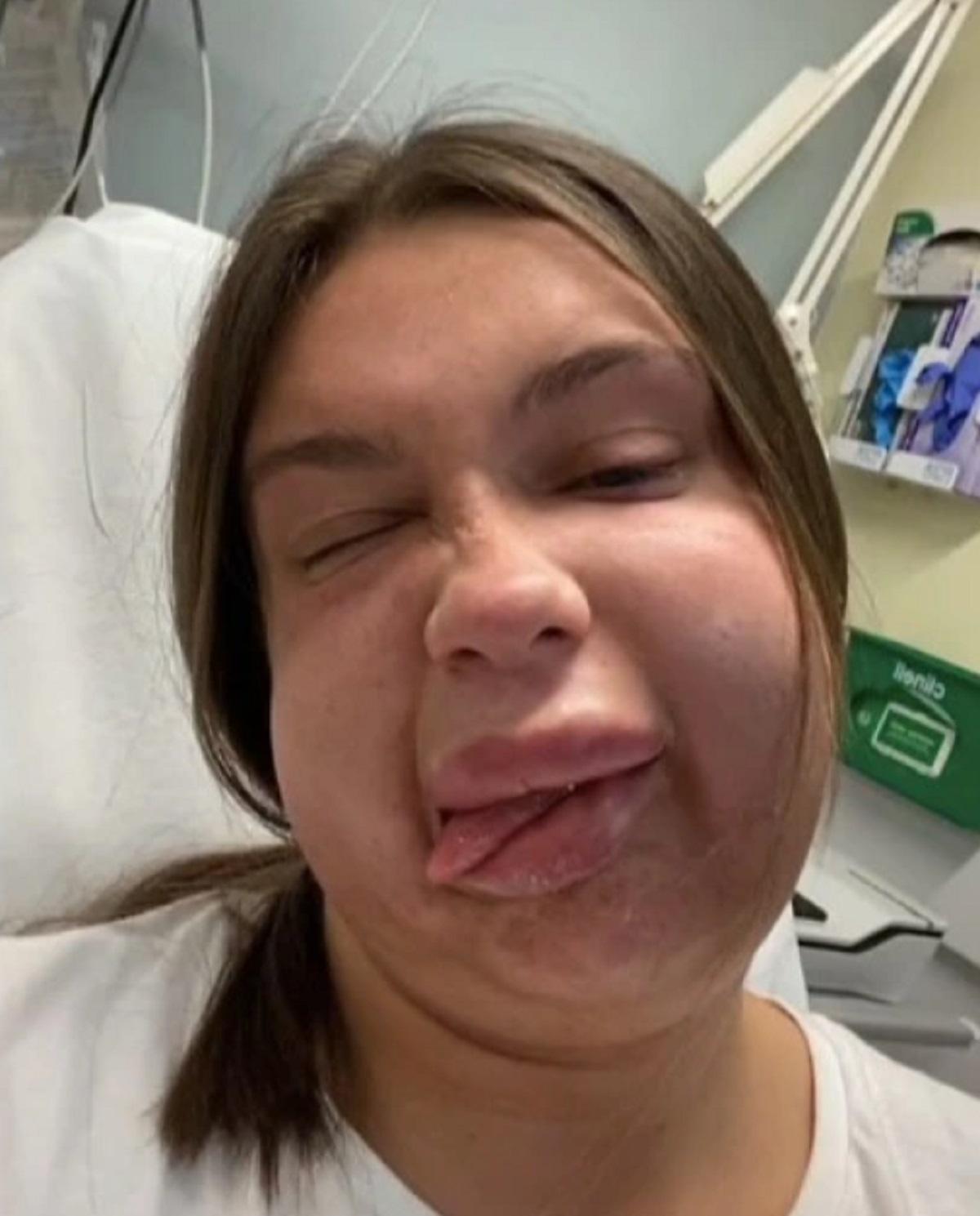 O femeie care a încercat să îşi dizolve acidul din buze a ajuns de urgenţă la spital cu faţa umflată | Sursa foto: Tiktok / rubyyfrais