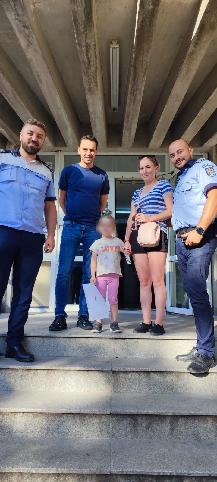 O fetiță de 3 ani din Botoșani s-a pierdut de mama ei, în timp ce se afla la un loc de joacă. Ariana a cerut ajutorul chiar unui polițist aflat în timpul liber | Sursa foto: IPJ Botoșani
