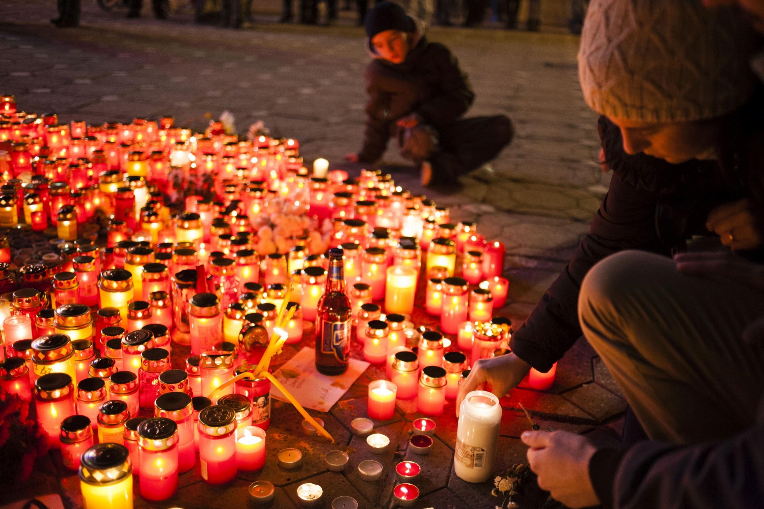 Covor de lumânări pentru cei decedaţi, în faţa clubului Colectiv