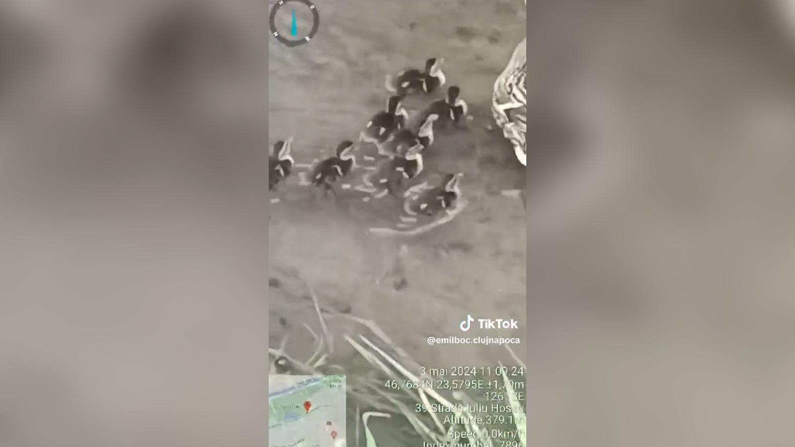 O mamă-raţă şi puii săi, conduşi de poliţiştii din Cluj spre lac. Misiune inedită pentru oamenii legii