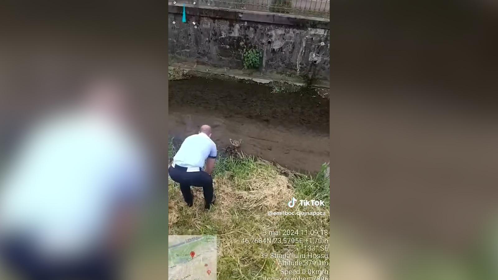 O mamă-raţă şi puii săi, conduşi de poliţiştii din Cluj spre lac. Misiune inedită pentru oamenii legii