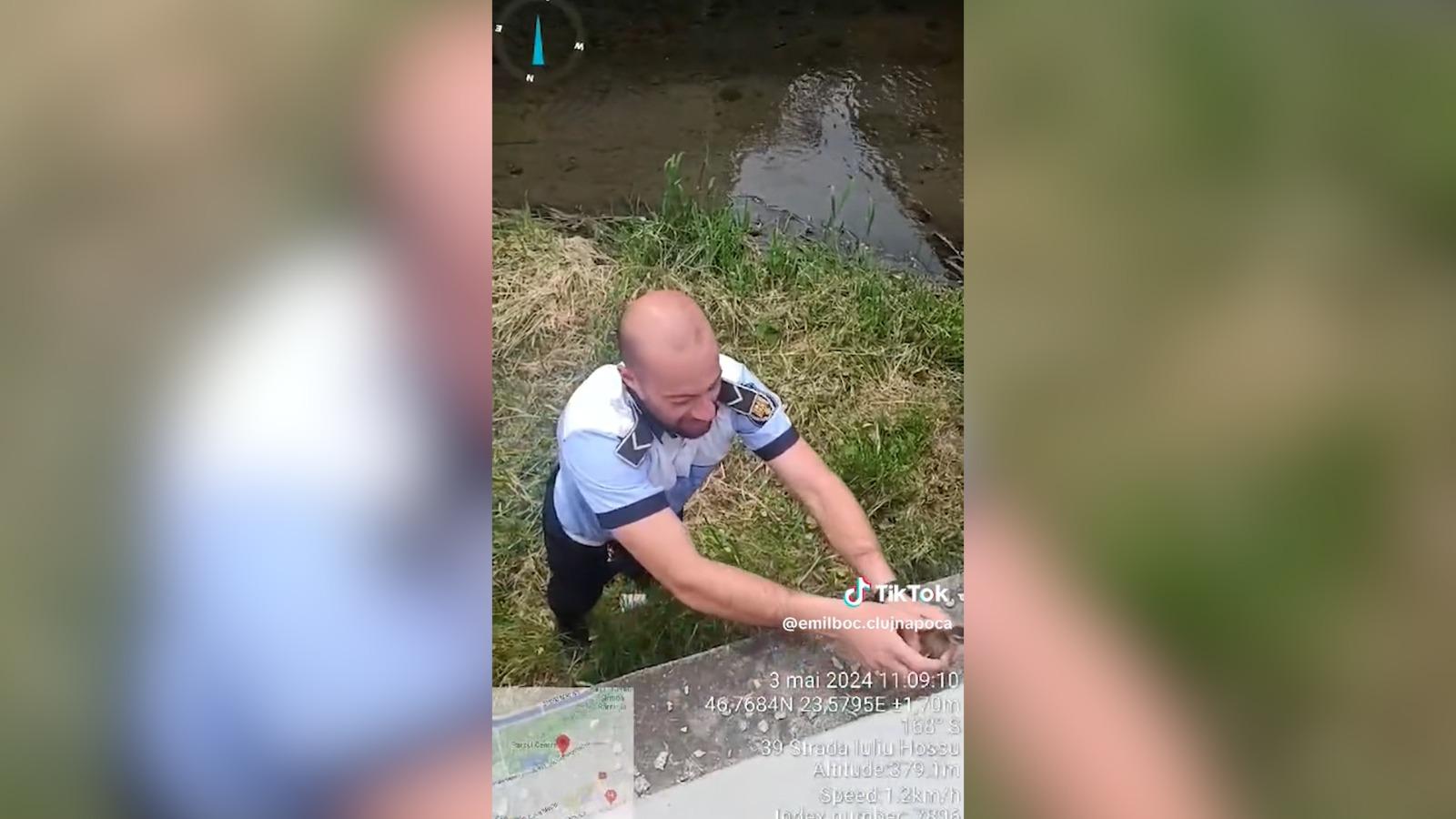 O mamă-raţă şi puii săi, conduşi de poliţiştii din Cluj spre lac. Misiune inedită pentru oamenii legii