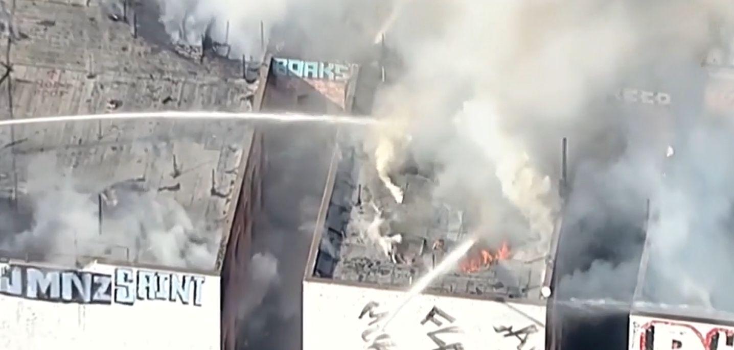 O mare parte din fostul hotel Morrison, distrus într-un incendiu. Clădirea a devenit celebră datorită trupei The Doors