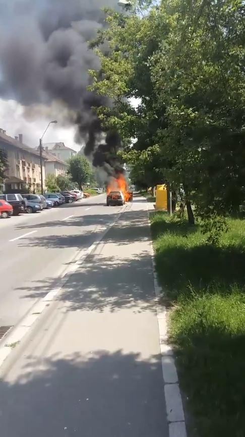 O maşină a luat foc din senin pe o stradă din Baia Mare. Şoferul s-a salvat în ultima clipă (Video)