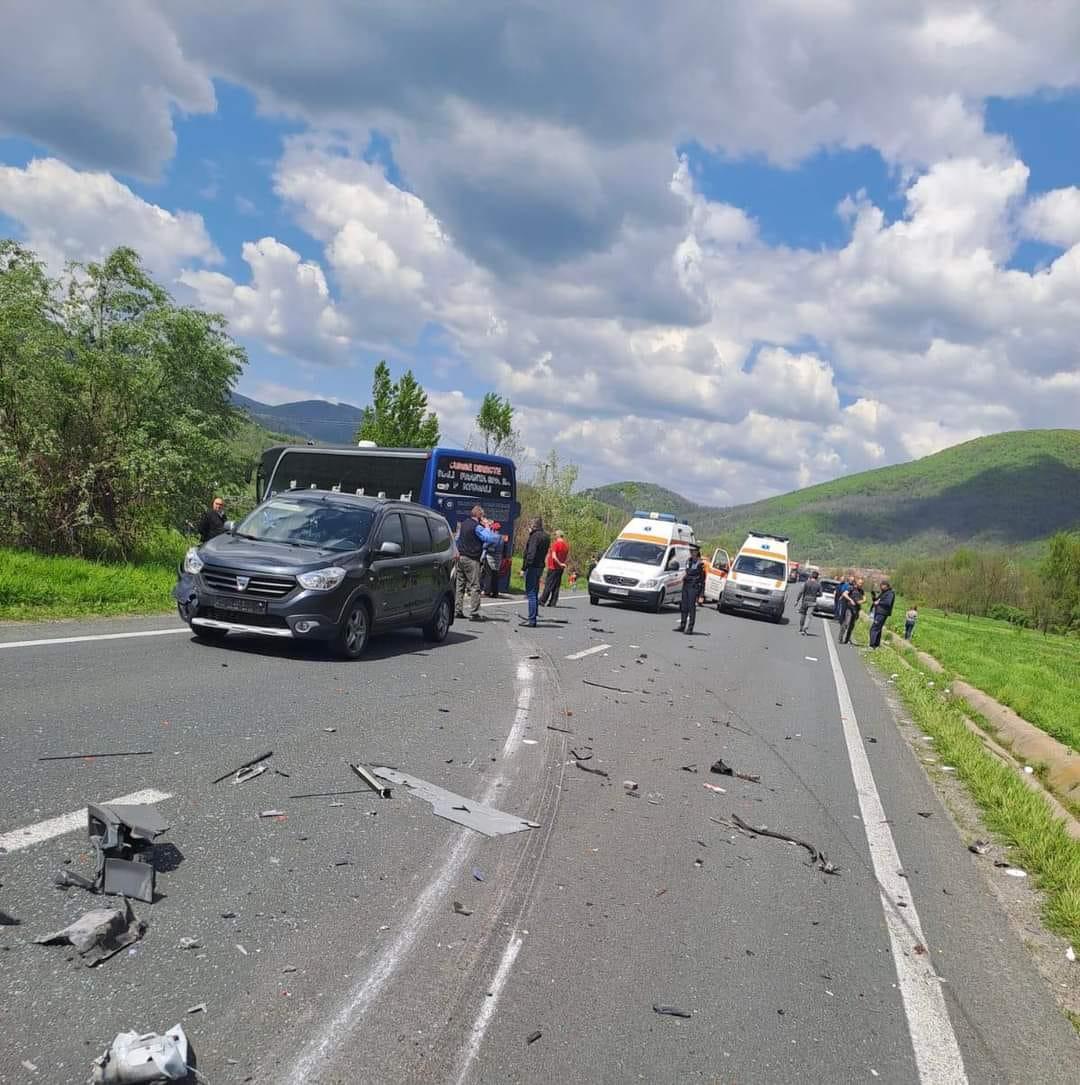 O persoană a murit, după ce un autocar, 3 autoturisme și o autoplatformă s-au ciocnit între ele, în Caraş-Severin. Bucăţi din maşini împrăştiate zeci de metri