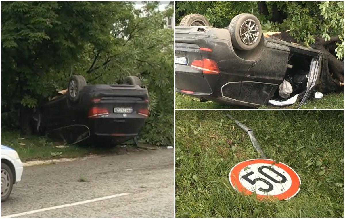 O româncă de 20 de ani s-a răsturnat cu maşina pe un drum în Ruse. Tânăra a pierdut controlul volanului şi a lovit un limitator de viteză şi un copac