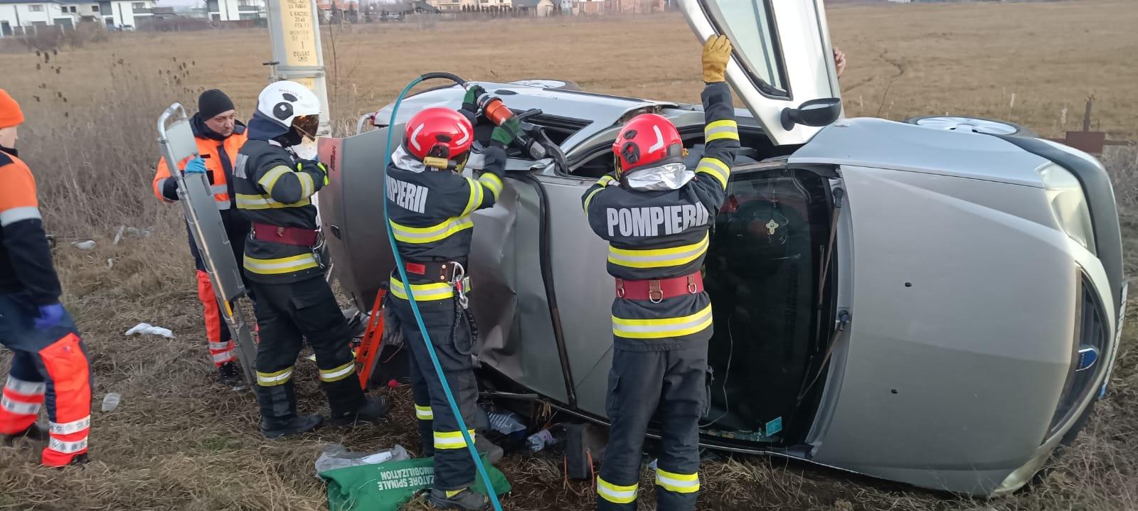 O şoferiţă din Vaslui a pierdut controlul volanului şi s-a răsturnat cu maşina: Trei persoane au fost rănite