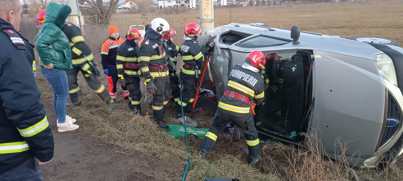 O şoferiţă din Vaslui a pierdut controlul volanului şi s-a răsturnat cu maşina: Trei persoane au fost rănite