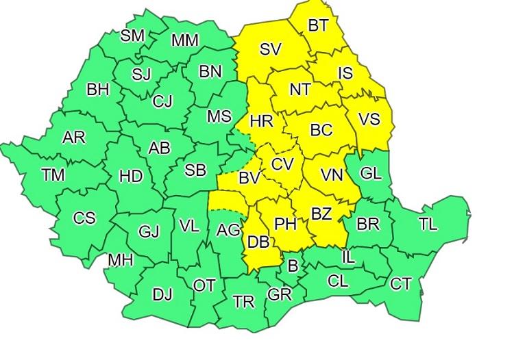 O treime din ţară, sub cod galben de ninsori abundente în următoarele ore. Începând de sâmbătă, vremea se schimbă din nou