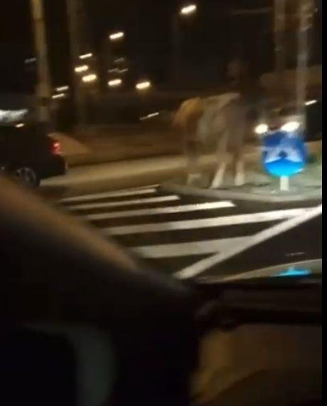 O vacă a ajuns într-un sens giratoriu din centrul Clujului. Animalul a stat cuminte, fără să fie deranjat de maşinile care treceau prin zonă