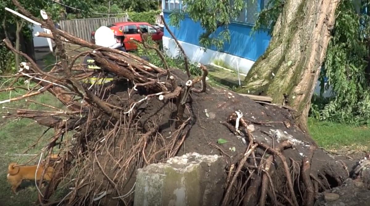 Oameni îngroziţi de furtună la Dângeni, în Botoşani, vântul a luat acoperişuri şi a dărâmat copaci pe case (video)