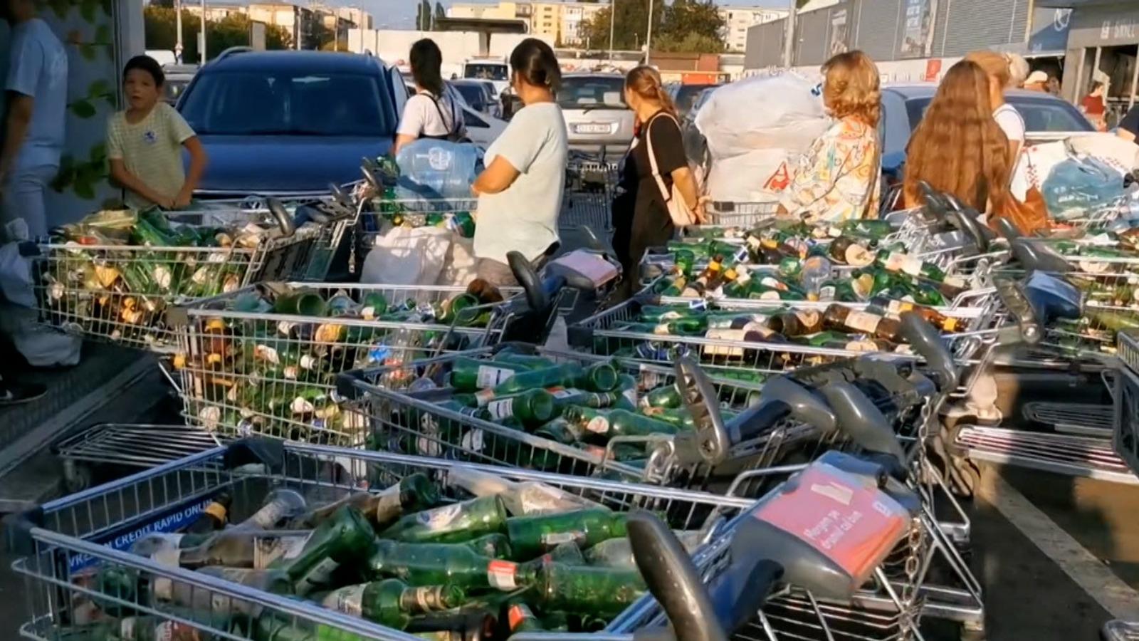 Oltenii s-au înghesuit la reciclat. Cu coşurile pline de doze şi pet-uri au făcut coadă în faţa magazinelor; au fost şi recompensaţi
