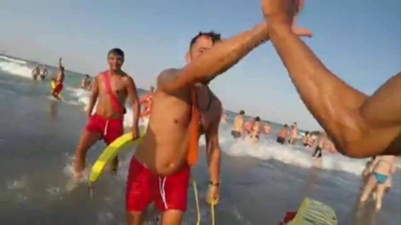 Operațiune DRAMATICĂ de salvare, filmată la Eforie Nord. Salvamarii scot turiștii din valuri pe bandă rulantă: "Nu vă potoliți, nu-i așa?" (VIDEO)