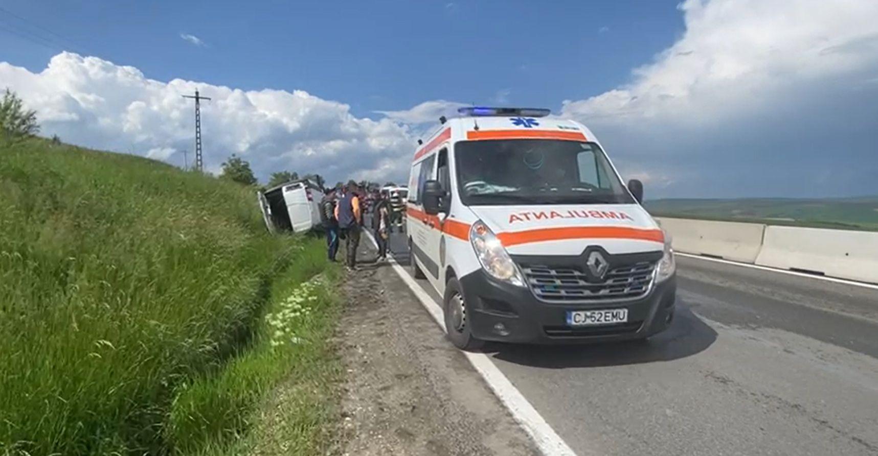Opt persoane au fost rănite, după ce un microbuz s-a răsturnat în judeţul Cluj