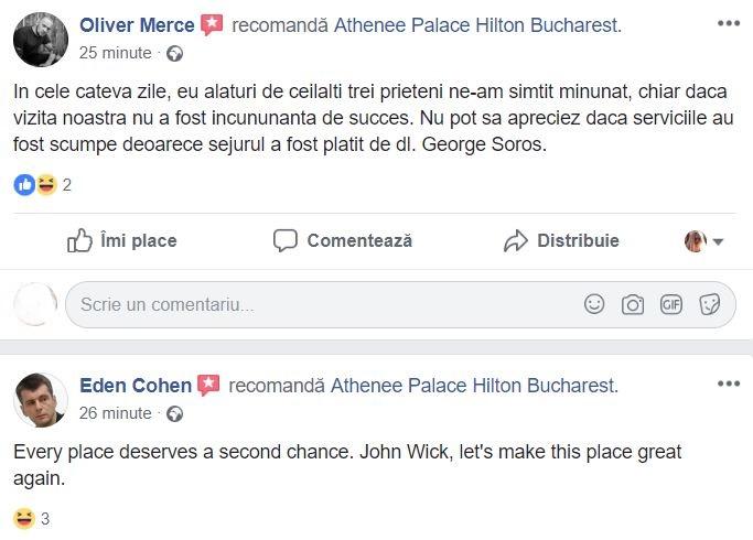 "Nu mai cazați asasini amatori!!". Românii cu simţul umorului au luat cu asalt pagina de Facebook a hotelului Athenee Palace Hilton