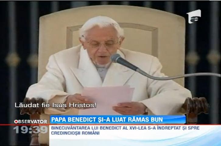 Papa Benedict al XVI-lea a aparut pentru ultima data in public, la balconul castelului Gandolfo