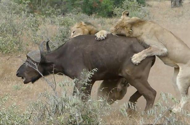 Pe acest bivol au tăbărât DOI LEI înfometați. Totul părea pierdut, când, deodată, s-a întâmplat incredibilul (VIDEO)
