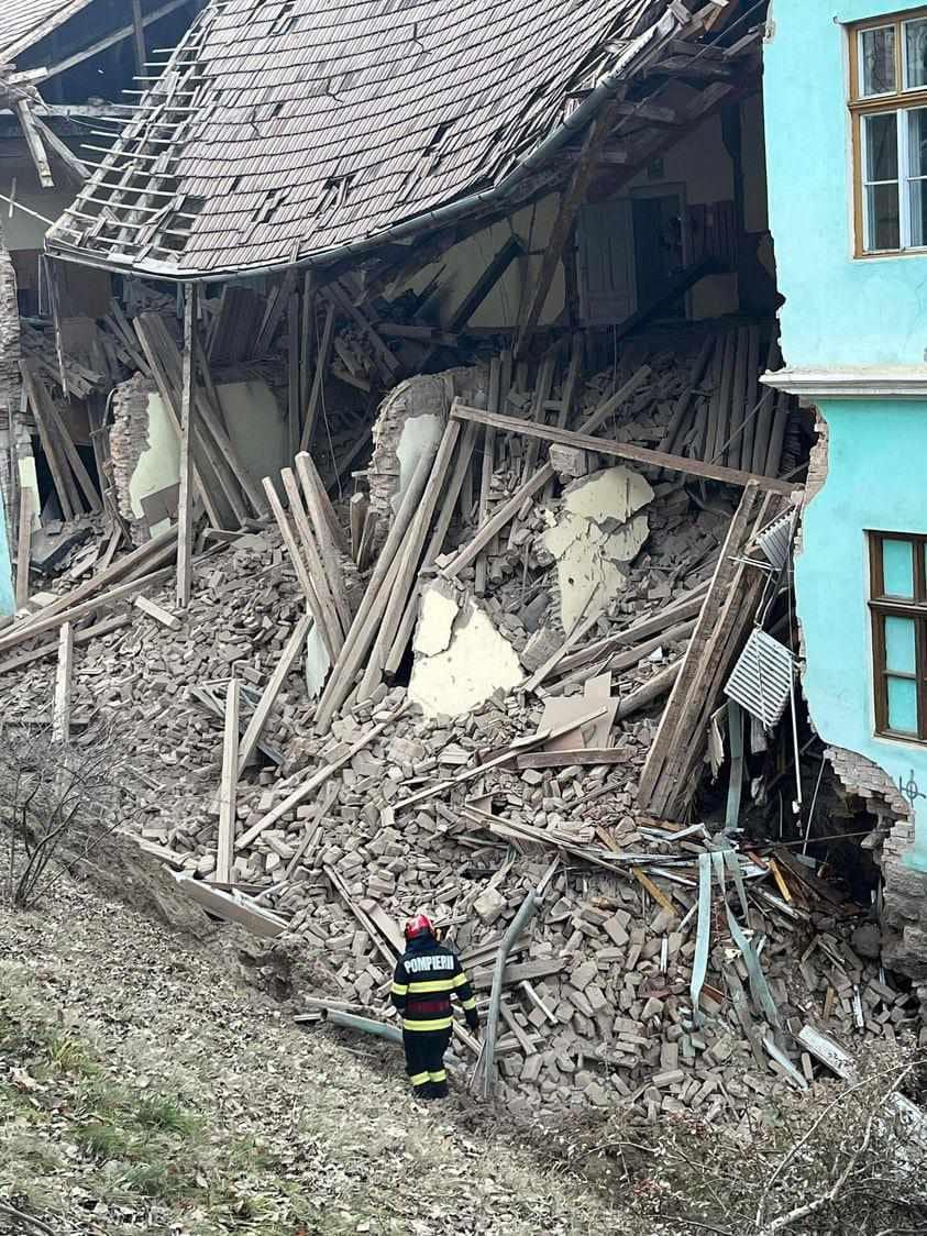 Peretele unui internat de liceu din Odorheiu Secuiesc s-a prăbușit. Patru copii ar fi prinși sub dărâmături