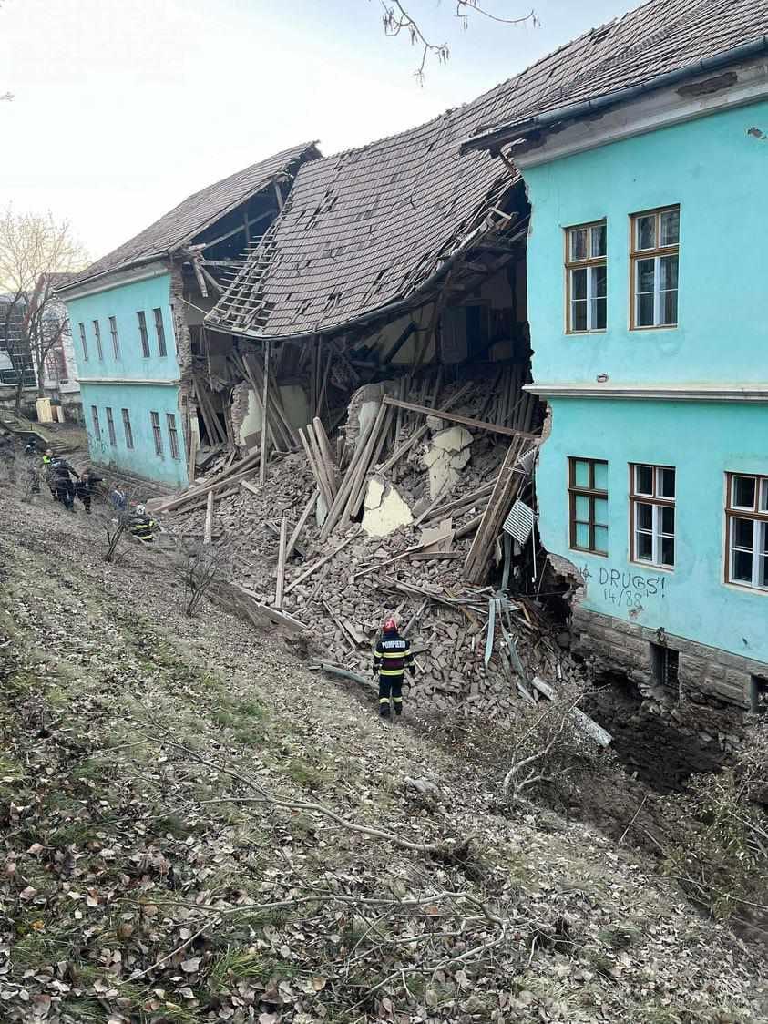 Peretele unui internat de liceu din Odorheiu Secuiesc s-a prăbușit. Patru copii ar fi prinși sub dărâmături