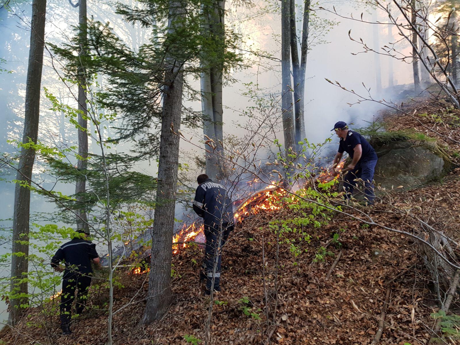 Pericol de explozie la Bacău. În zona în care arde pădurea s-a descoperit muniţie neexplodată. Intervin pirotehniştii