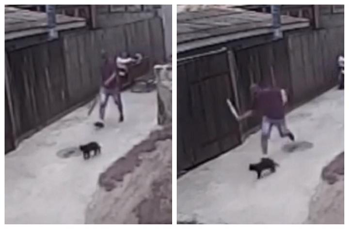Imagini șocante la Suceava! Un individ lovește cu o bâtă o pisică neagră, ce-i apare în cale. Animalul a fost ucis pe loc