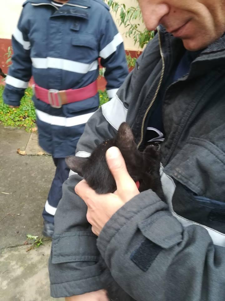 O pisicuţă căzută într-o fântână la Buteni, în Arad, a fost salvată după aproape o oră de pompieri