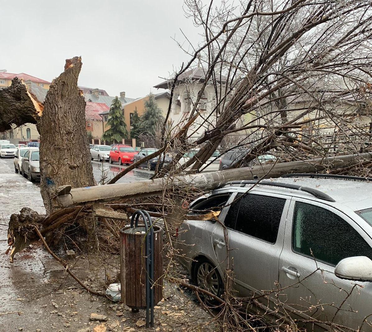 Haos în București din cauza ploii inghețate: sute de copaci au căzut peste mașini, case și stâlpi de electricitate. Imagini dramatice