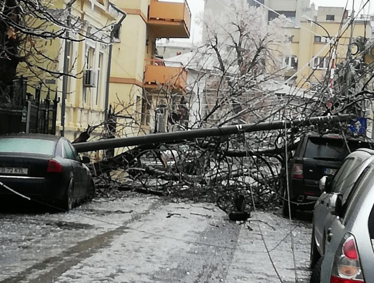 Haos în București din cauza ploii inghețate: sute de copaci au căzut peste mașini, case și stâlpi de electricitate. Imagini dramatice