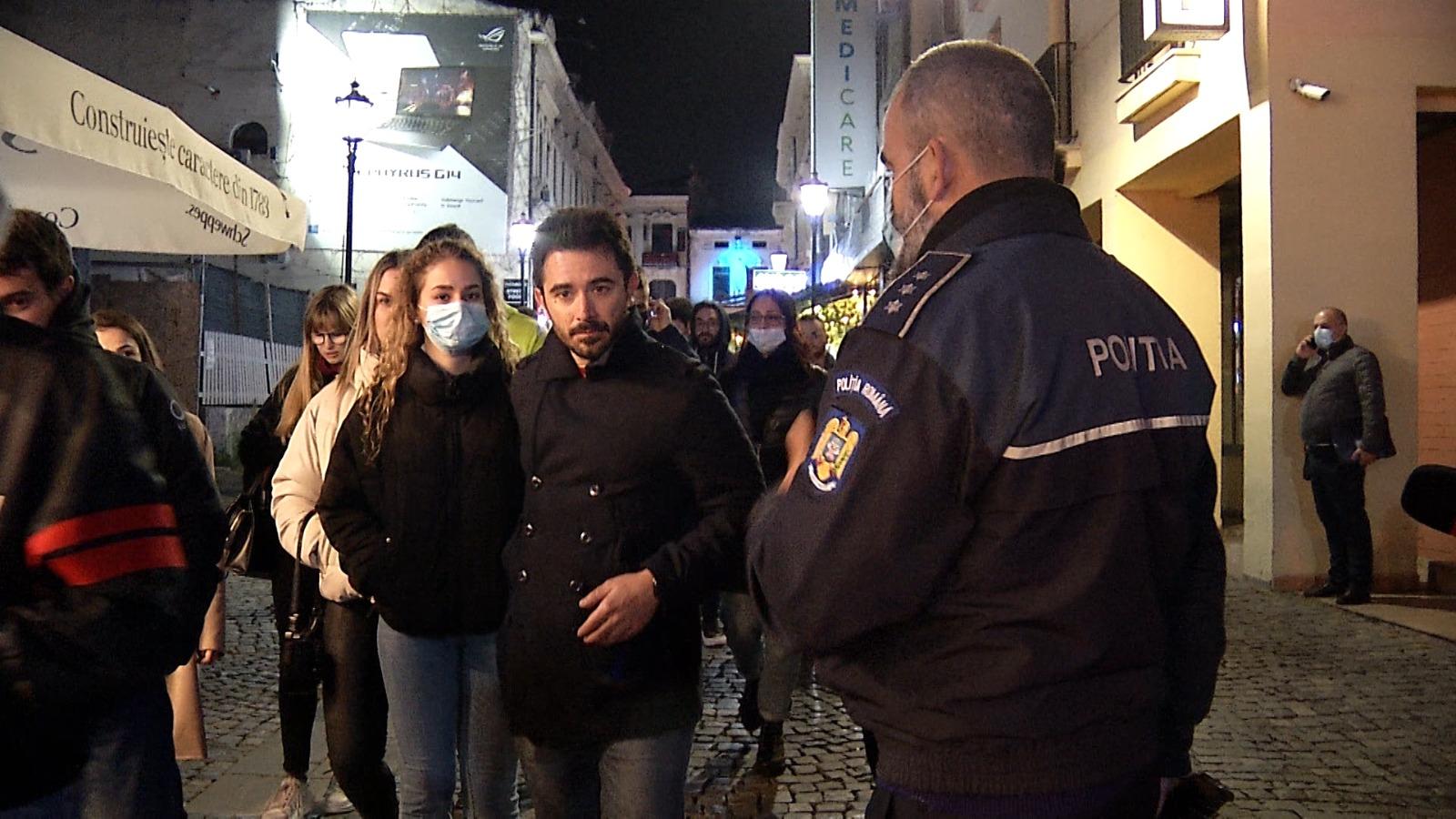 Polițiști și jandarmi, printre tinerii petrecăreți din Centrul Vechi: "Masca! Masca... domnişoară!"