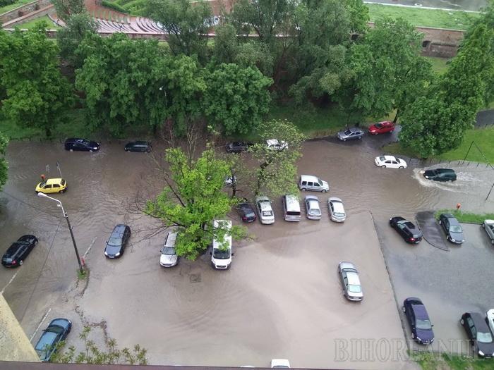 POTOP LA ORADEA! O rupere de nori a inundat străzile din oraş şi parcarea subterană a unui centru comercial (VIDEO)