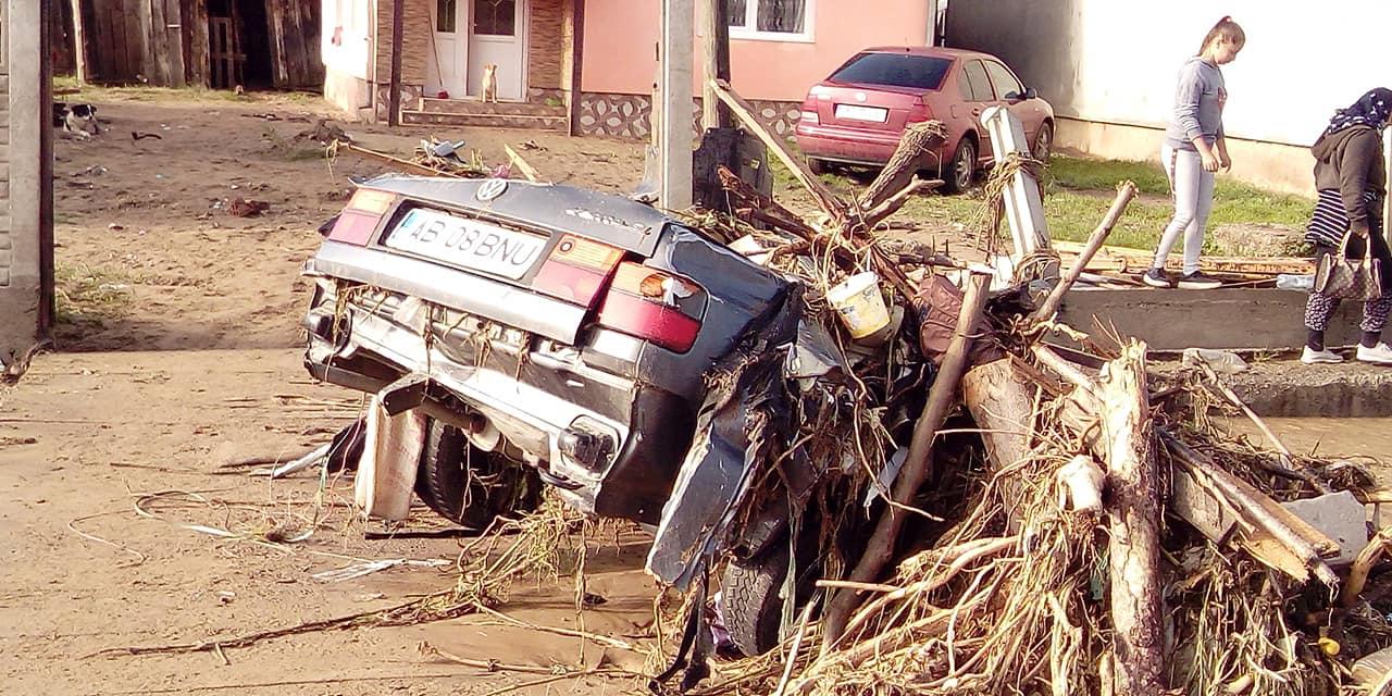 Prăpăd la inundații, în Alba. Viitura a distrus zeci de mașini