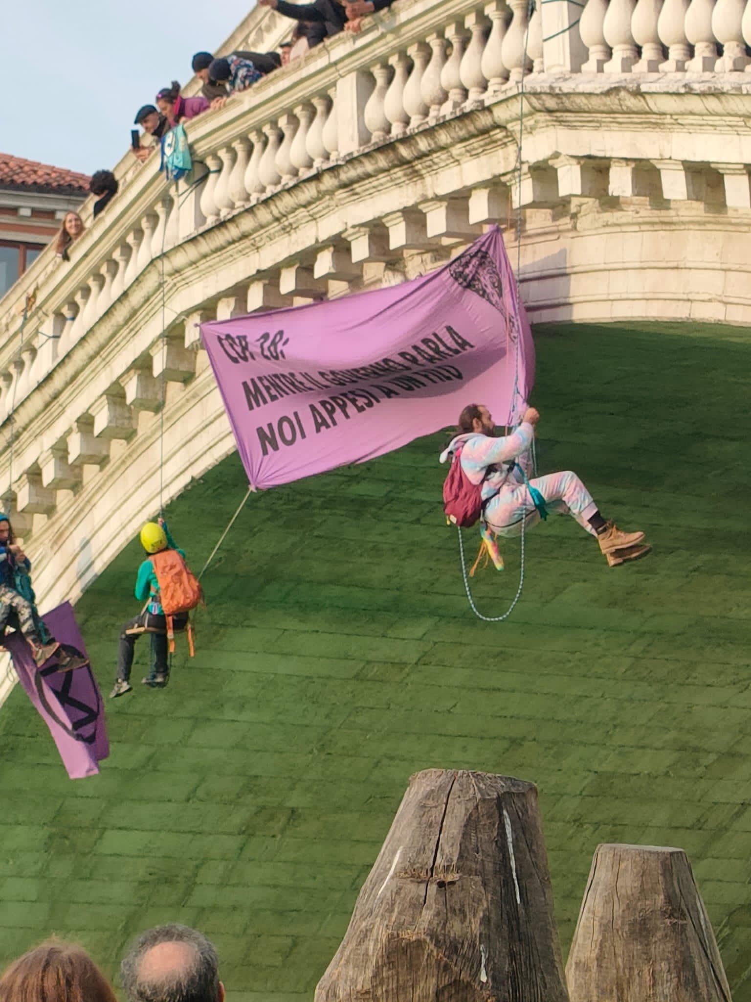 Primarul Veneției, exasperat de "eco-vandali". Activiștii de mediu au vopsit în verde apa de pe Marele Canal din Veneţia în semn de protest | Sursa foto: Twitter