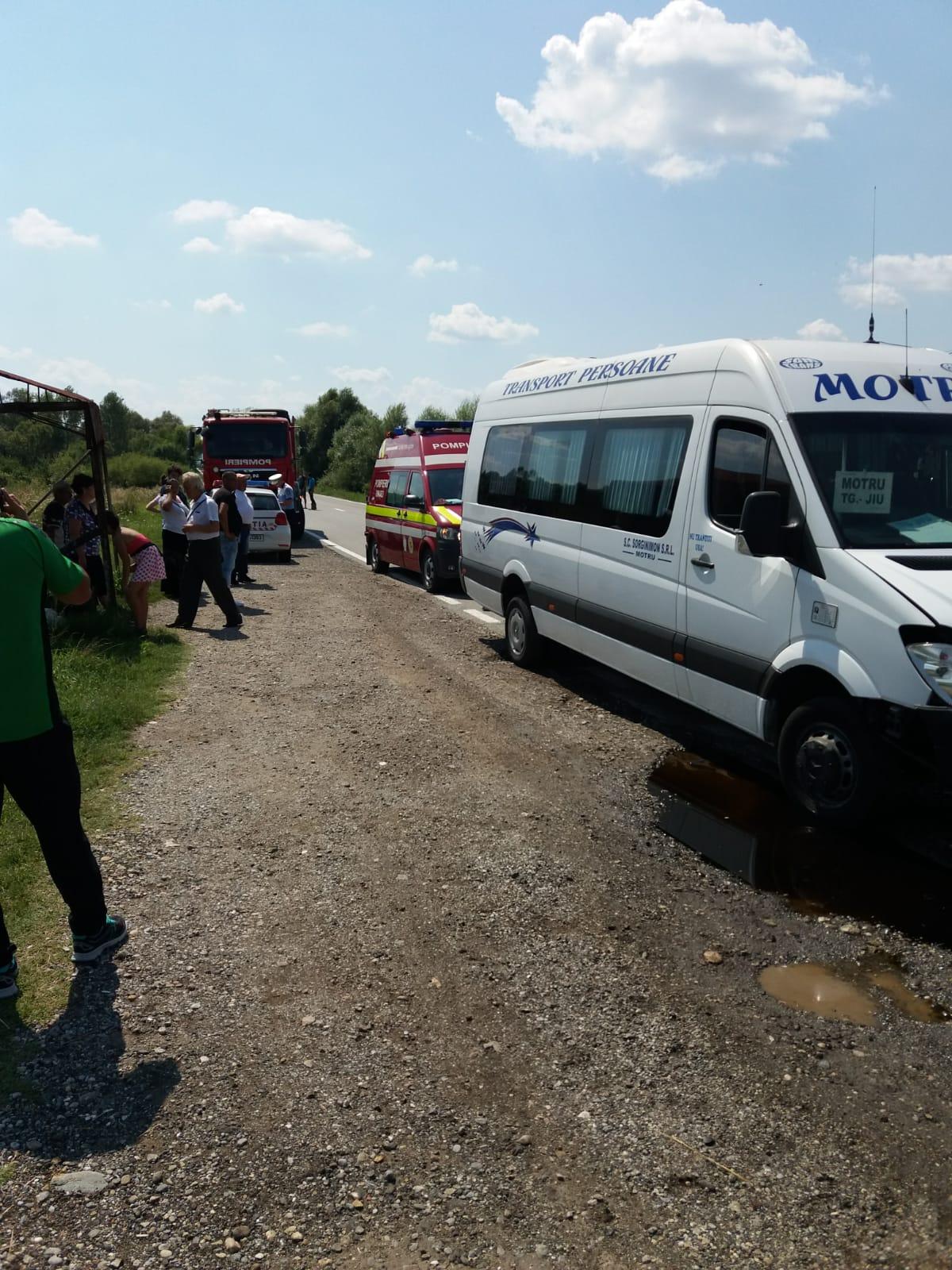 Primele imagini de la accidentul cu 10 victime din Gorj. La faţa locului intervin pompierii, circulaţia este blocată pe ambele sensuri (Video)