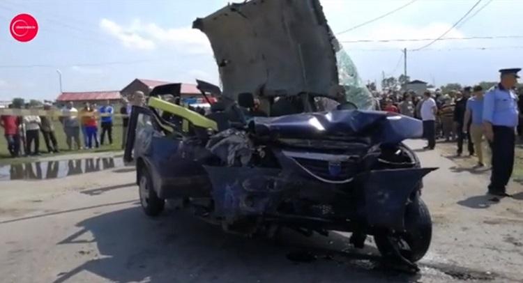 Primele imagini de la accidentul de taxi mortal de la Redea! Maşina s-a făcut praf după impactul devastator cu un stâlp